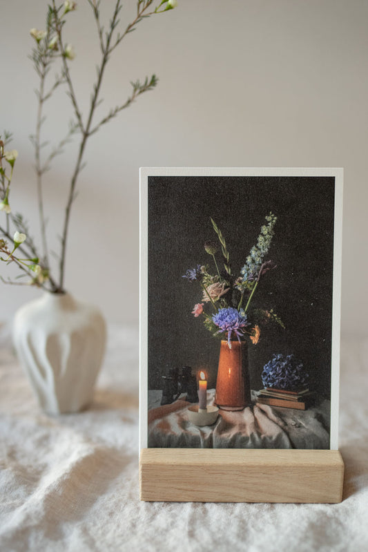 Een prachtig stilleven op Fine Art papier (15x23 cm) inclusief eikenhouten foto houder.